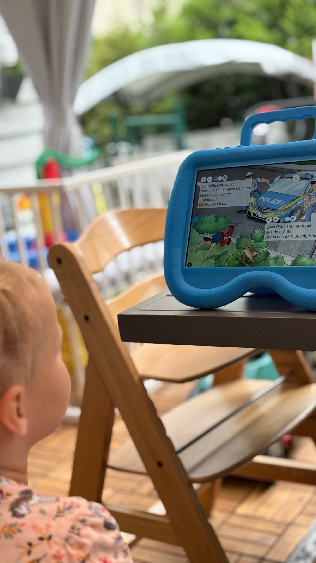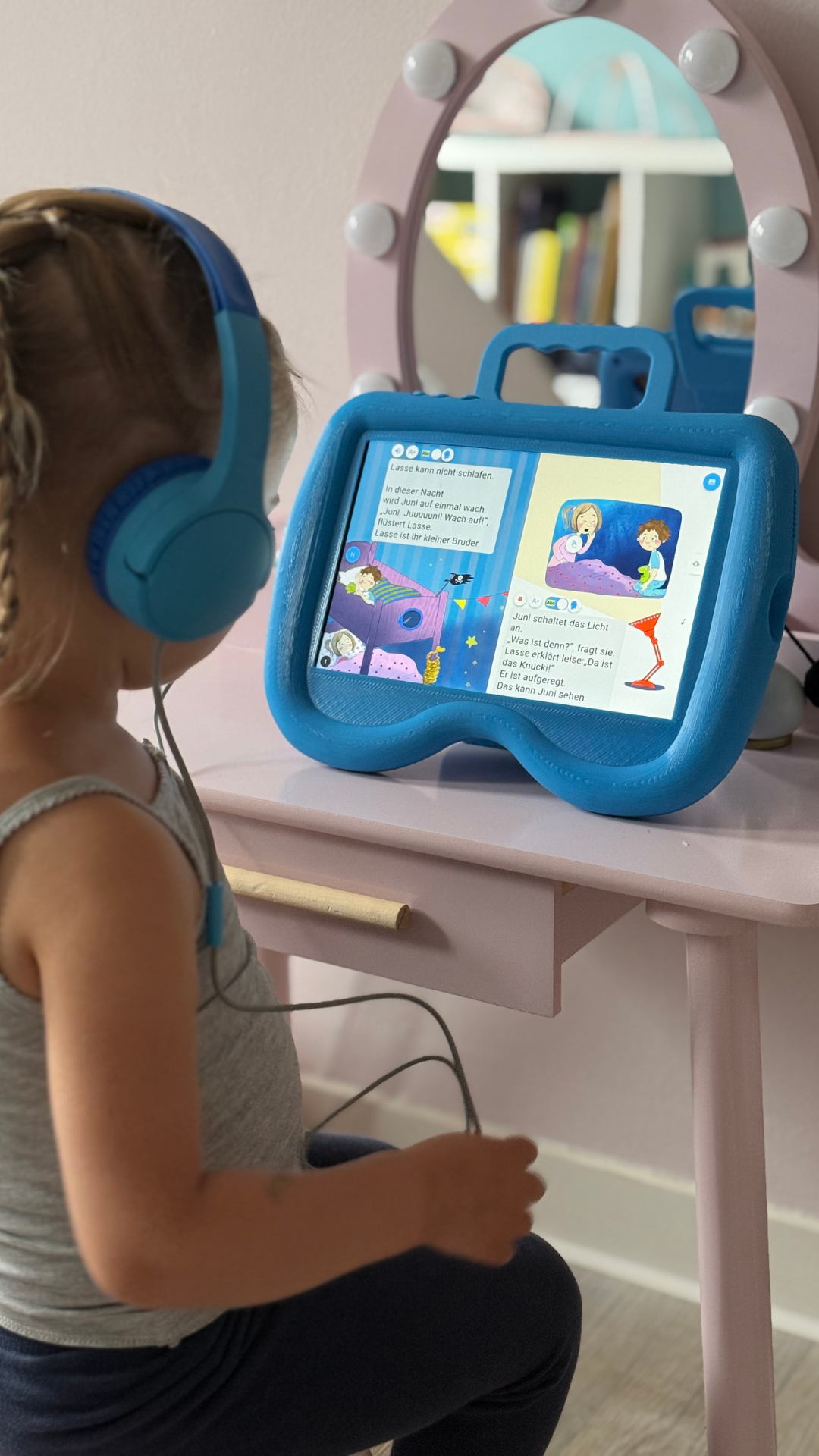 „CLELO ist eine wunderbare Möglichkeit, Kinder an das Lesen heranzuführen. Vor allem die Aufnahmefunktion fanden wir ein tolles Instrument, um entweder Geschichten für die Kleinen selbst einzusprechen oder auch ältere Kinder zum Lesen und anschließenden Anhören zu motivieren.“